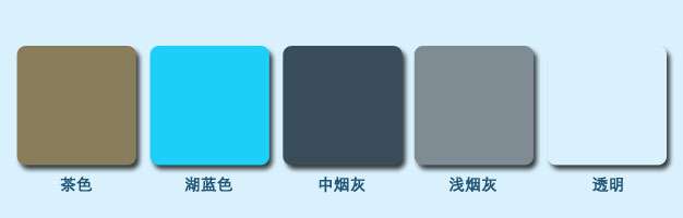 顶棚可选颜色(可定制其他颜色):中烟灰、 浅烟灰、 茶色、 湖蓝色、 透明