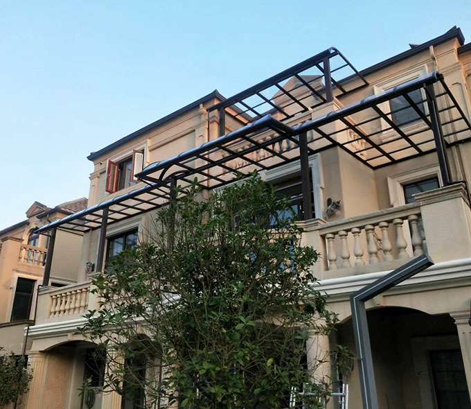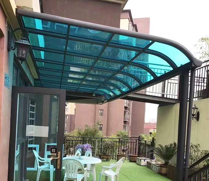 爱游戏最新官网-爱游戏(中国)雨棚(A5款窗棚、露台棚)系列产品是高强度铝合金和聚碳酸酯板(耐力板)的结合。主体结构全部采用高品质、高强度铝合金材料精加工而成,具备的氧化保护能力,不生锈,表面特殊的工艺处理,大大提高了雨棚的使用寿命。顶棚耐力板的运用,能遮挡阳光中的有害紫外线对地板、墙壁、窗帘等损害;同时阻挡夏日毒辣的太阳,可以控制室内温度的上升,冷气效果也大幅度提高,从而达到节约能源的作用。